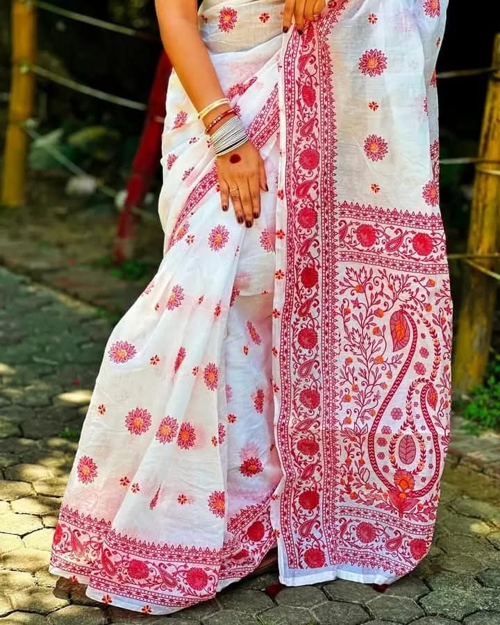হাফসিল্ক ব্লক প্রিন্ট শাড়ী